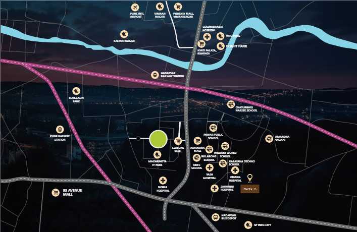 Situated near Magarpatta. Vyom Sigma Avinea is at a perfect balancing point. A point that surrounds you with swathes of calming vistas for as far as your gaze can wander. However, if you were to turn on your Google Maps, you'll be surprised to see prominent work hubs as well as established hubs of education, retail and healthcare within minutes of your home. Welcome to a world where your views change dramatically but not your everyday lifestyle.